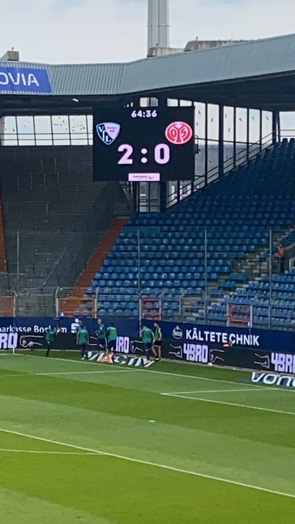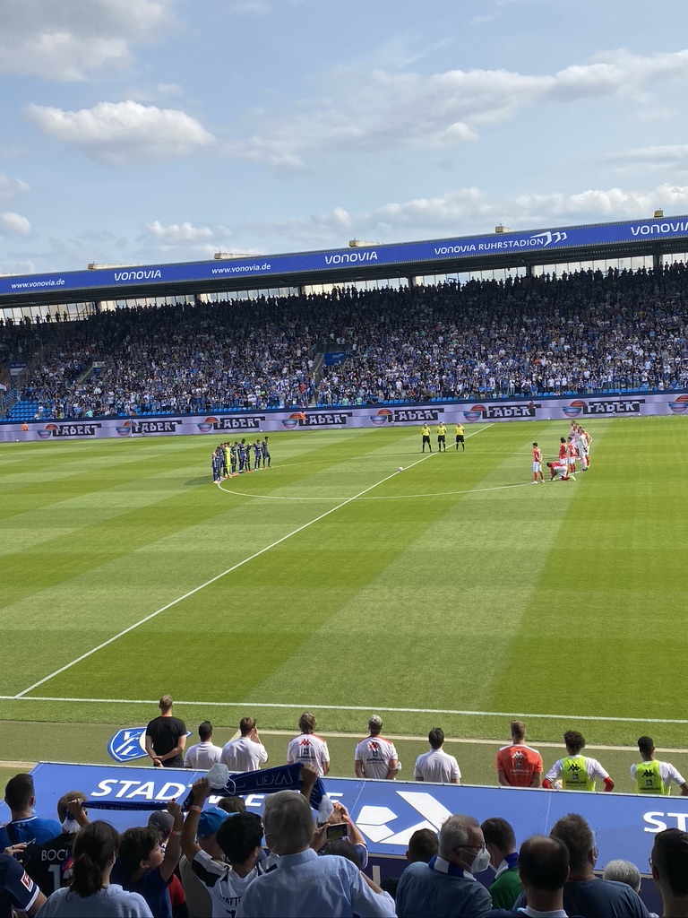 Leidenschaft. Siegeswillen. Kampfgeist. 1. Liga. 15:30 Uhr. Endlich wieder ein VfL-Heimspiel mit Fans. Gefühlt nur blau-weiße Fahnen. Eine emotionale-Stimmung, als Stadionsprecher Michael Wurst die Mannschaftsauftstellung mit den Fans der Osttribüne rockt. Dazu singt Geburtskind Maria (7), die mitten auf dem Rasen mit ihm steht, mit den Bochumern aus der Osttribühne: