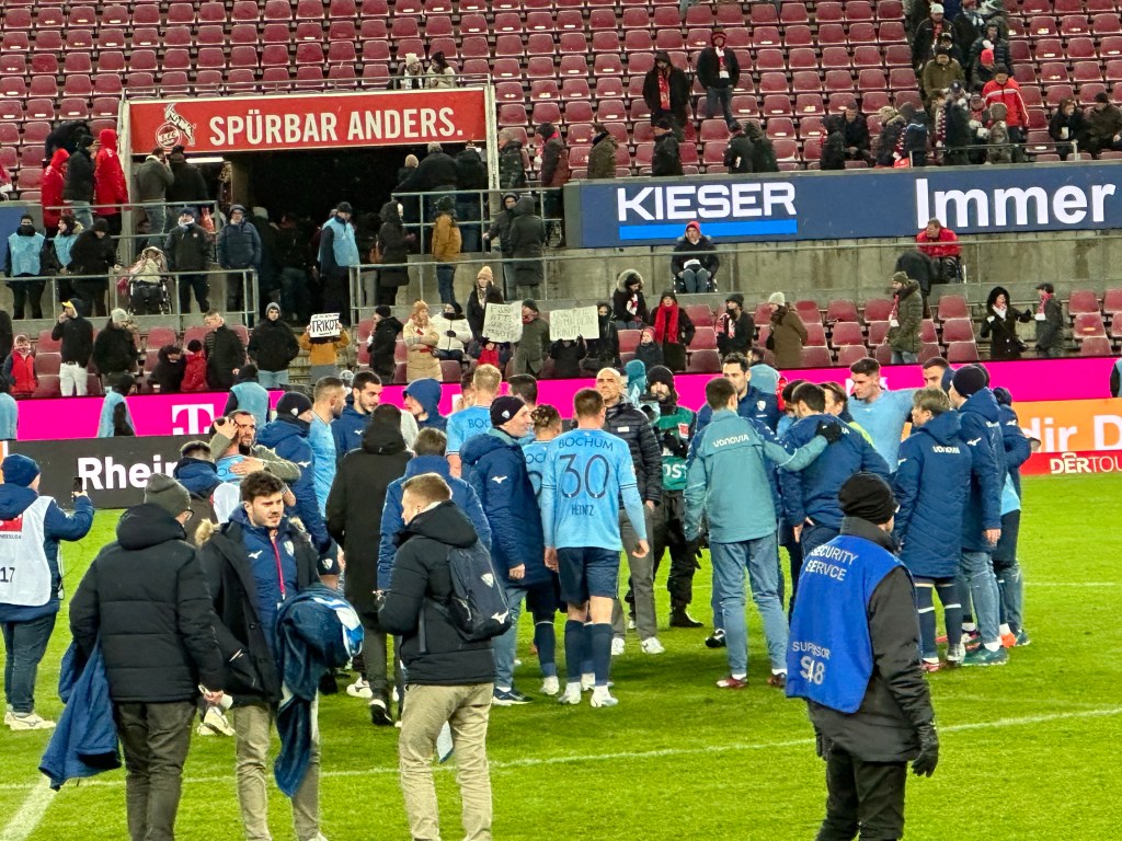Glücklich und versöhnt feierten die Profis mit den 5.000 Bochum Fans den verdienten Sieg in Köln.