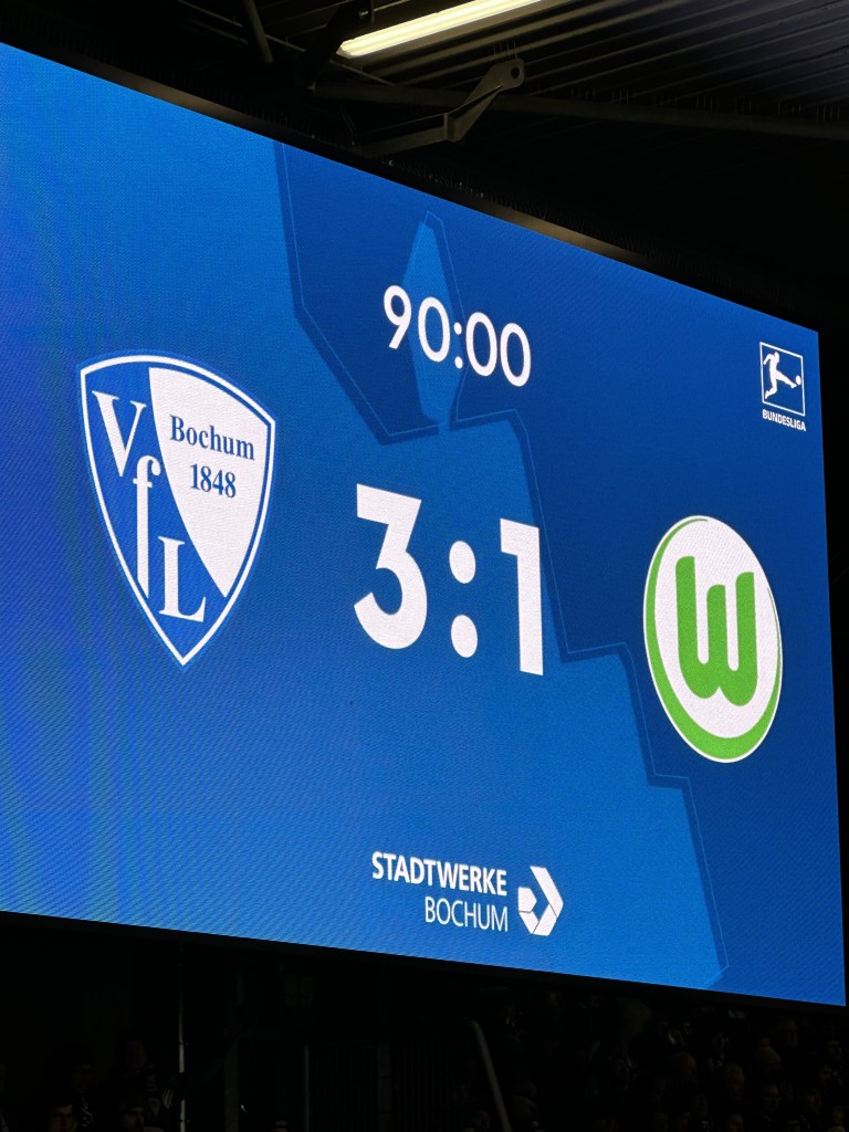 Zwar sorgte die erste Torchance der Wolfsburger, die direkt zum Anschlusstreffer kurz vor der Pause führte, erneut für kribbelnde Fangefühle, frei nach dem Motto: „Warum kann man nicht einmal beruhigt 2:0 als VfL-Fan in die Pause gehen“. Aber am Ende war es diesmal ein „Happy End“ für den VfL, Mit einem so wichtigen Sieg. Diese Energie und frühes, konsequentes Pressing, muss nun am Freitag gegen Hoffenheim wieder gezeigt werden. Dann wird Bochum in dieser Saison -und diesem starken Kader in der Breite- garantiert nichts mit dem Abstieg zu tun haben…