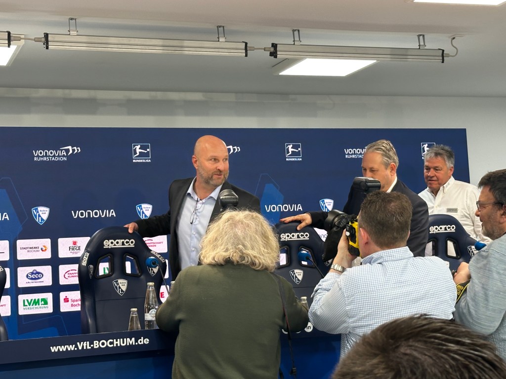 Die Kameras klicken, das Blitzlichtgewitter erhellt heute den Raum im Ruhrstadion, der fast voll besetzt ist – die Spannung im Presseraum des VfL Bochum ist spürbar.